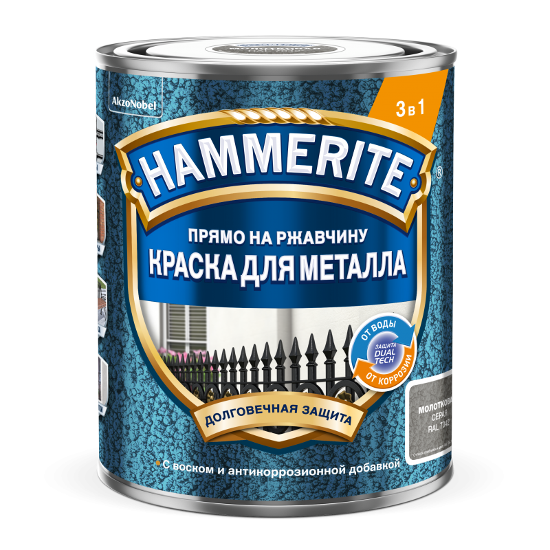 Благодаря технологии Dual Tech c добавлением воска, Hammerite обеспе- чивает двойную защиту металлической поверхности от воды и коррозии. Образует износостойкое и эластичное покрытие, которое остается устойчивым и не растрескивается при перепадах влажности и температуры внутри и снаружи помещений. Hammerite обладает чешуйчатой структурой, служащей дополнительным барьером на пути кислорода и воды к металлической поверхности.