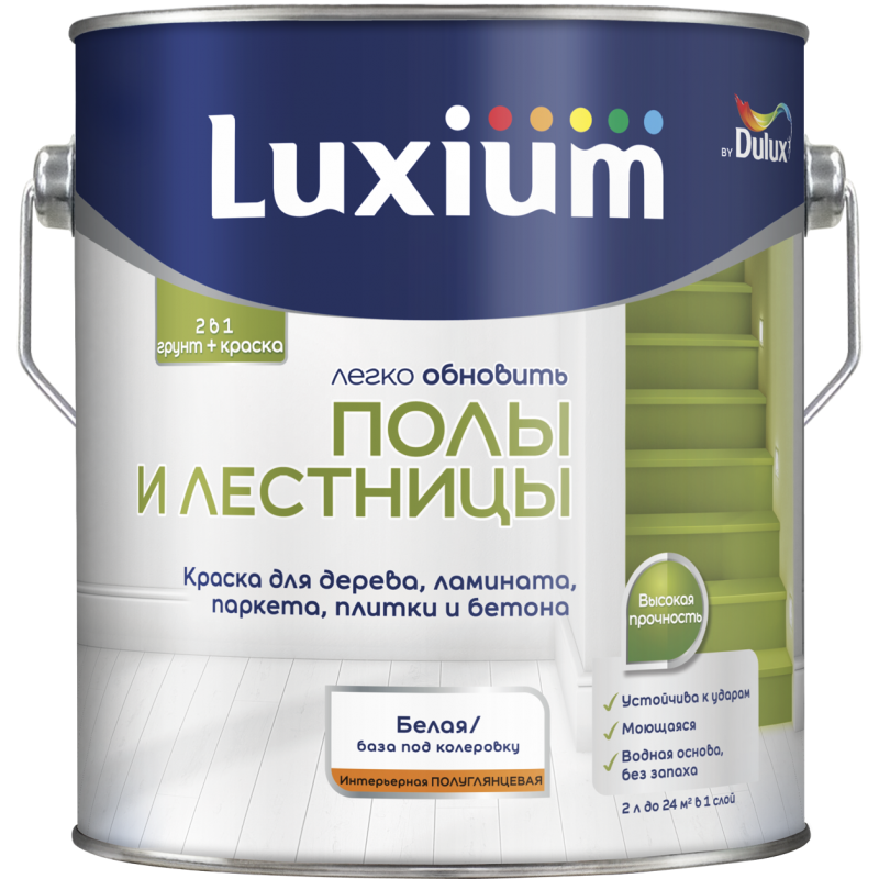 Краска LUXIUM Полы и Лестницы - полуглянцевая краска для дерева, ламината, паркета, плитки и бетона