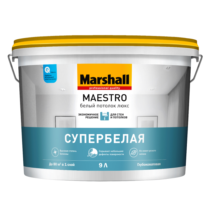 Краска MARSHALL Maestro Белый Потолок Люкс - глубокоматовая водно-дисперсионная краска для потолков и стен