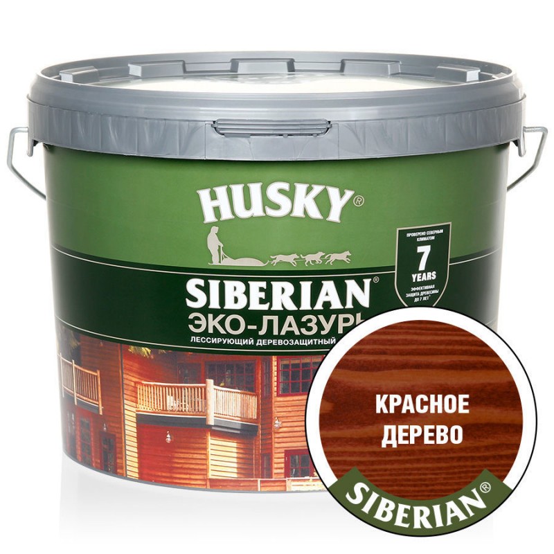 HUSKY SIBERIAN «Эко-Лазурь для дерева» полуматовая красное дерево (9л; 6шт)