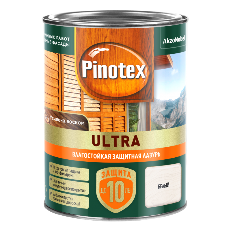 Лазурь влагостойкая Pinotex Ультра Белый 0,9л