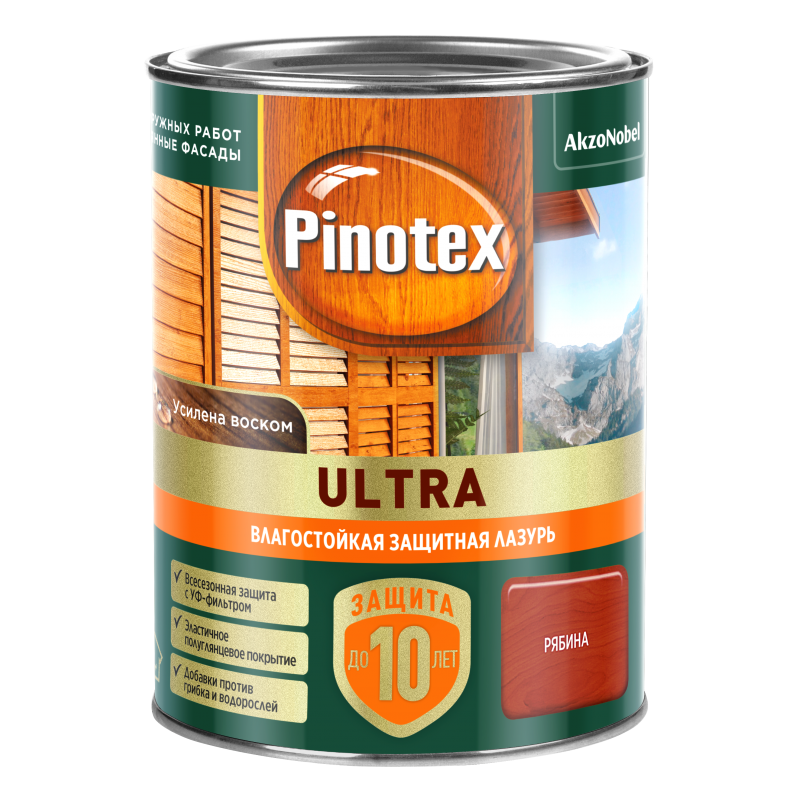 Лазурь влагостойкая Pinotex Ультра Рябина 0,9л
