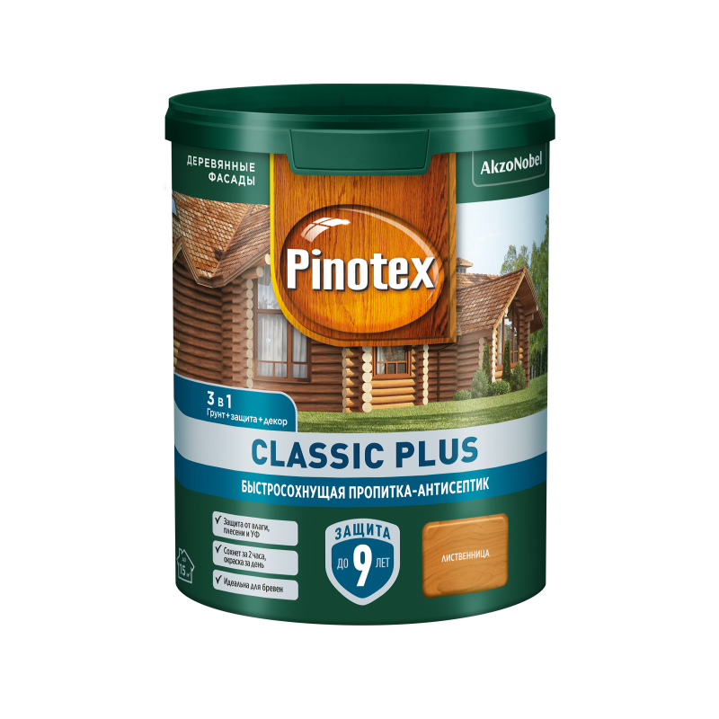 PINOTEX Classic Plus (ПИНОТЕКС классик плюс) - быстросохнущая пропитка-антисептик на гибридной основе для защиты древесины до 9 лет