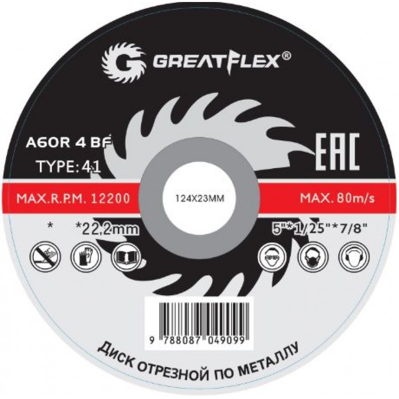 Диск отрезной по металлу GREATFLEX T41-125х1,6х22,2мм Master