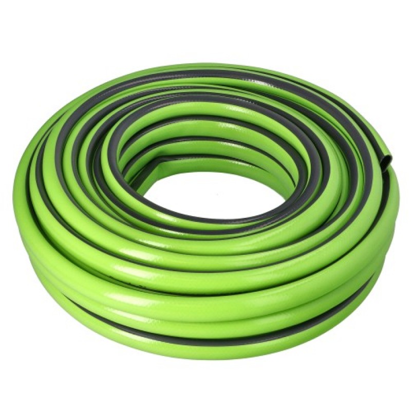 - 3-слойный шланг изготовлен из гибкого ПВХ на основе поливинилхлорида, терефталата и других компонентов, дополнительно усилен текстильной оболочкой;