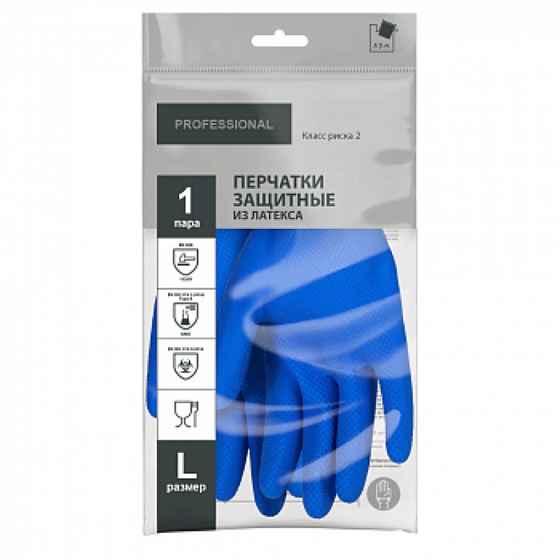 Перчатки защитные КЩС латексные L, синие, ADM Professional /120