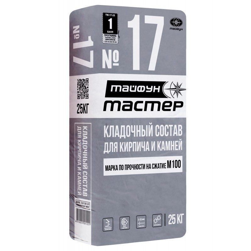 Кладочный состав «Тайфун Мастер» №17 (17М) применяется для кирпичной и каменной кладки стен и перегородок из кирпича, природных и искусственных камней правильной и неправильной формы.